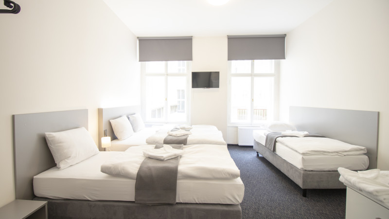 A spacious quadruple room furnished in a modern style comes with a bathroom and has one bedrooms, offering enough room for up to 4 guests. Our beds offer maximum comfort for your sleep. The room features a bathroom with shower.