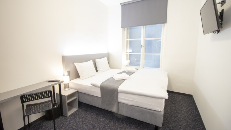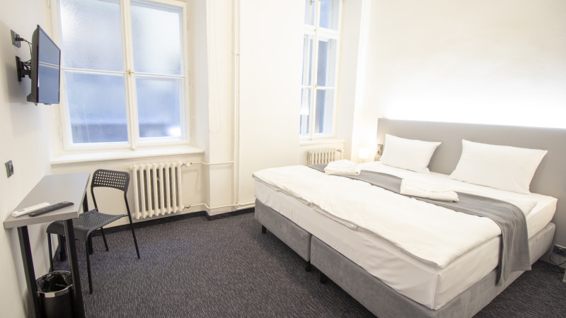Deluxe dvoulůžkový pokoj bez výhledu je moderně a komfortně vybaven, tak abyste si po celodenní práci či procházce po Praze odpočinuli a načerpali síly do dalšího dne.
